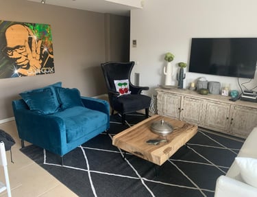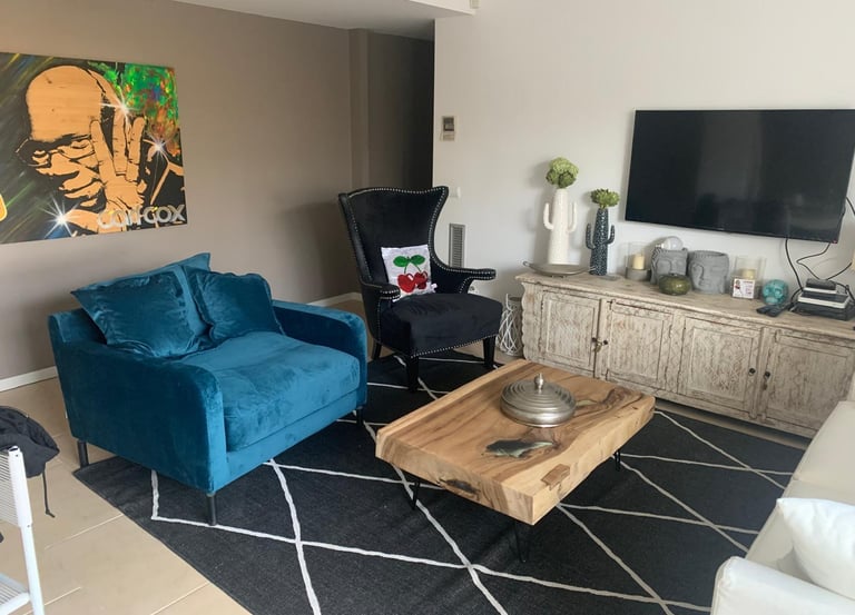 Step into this meticulously designed apartment where contemporary luxury meets Mediterranean charm. Every detail has been carefully curated, from premium furnishings to artistic touches, creating an intimate yet spacious environment that serves as your private urban retreat with complete privacy and refined comfort.